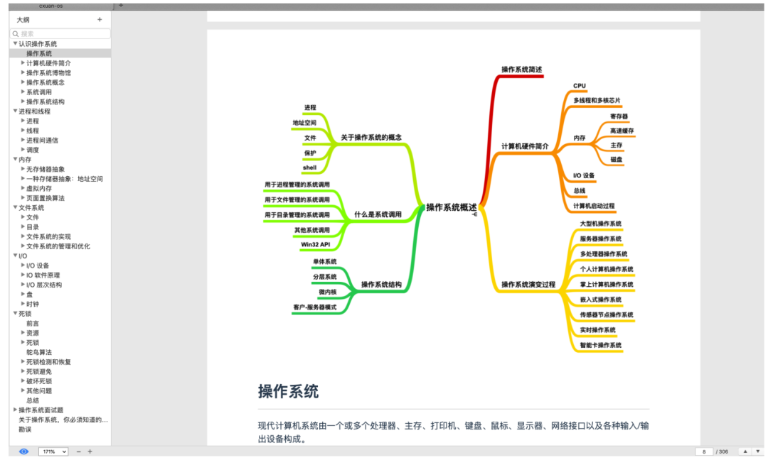 今年上半年,他将时间都花在操作系统的写作总结上,整理了一份 306 页的 PDF 文件,而且配图更加清晰,对黑皮书翻译有误的地方也进行勘误,这份毅力和细心真的不是一般人能坚持下来。